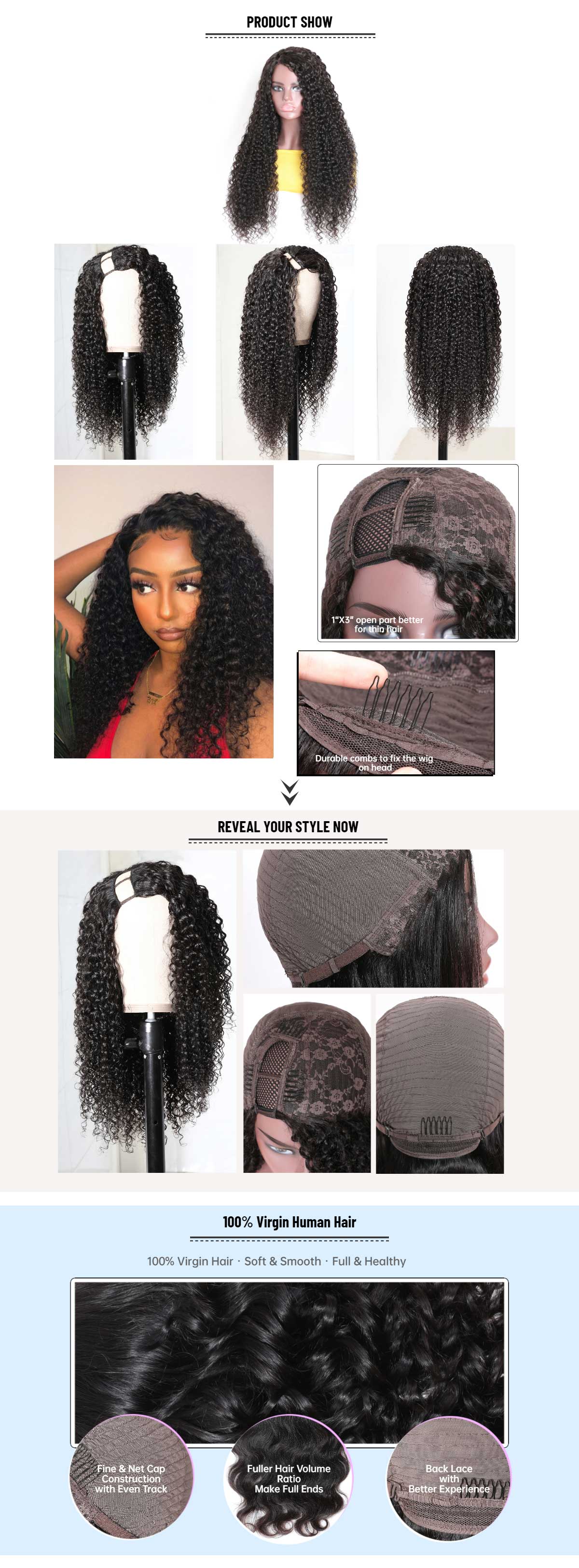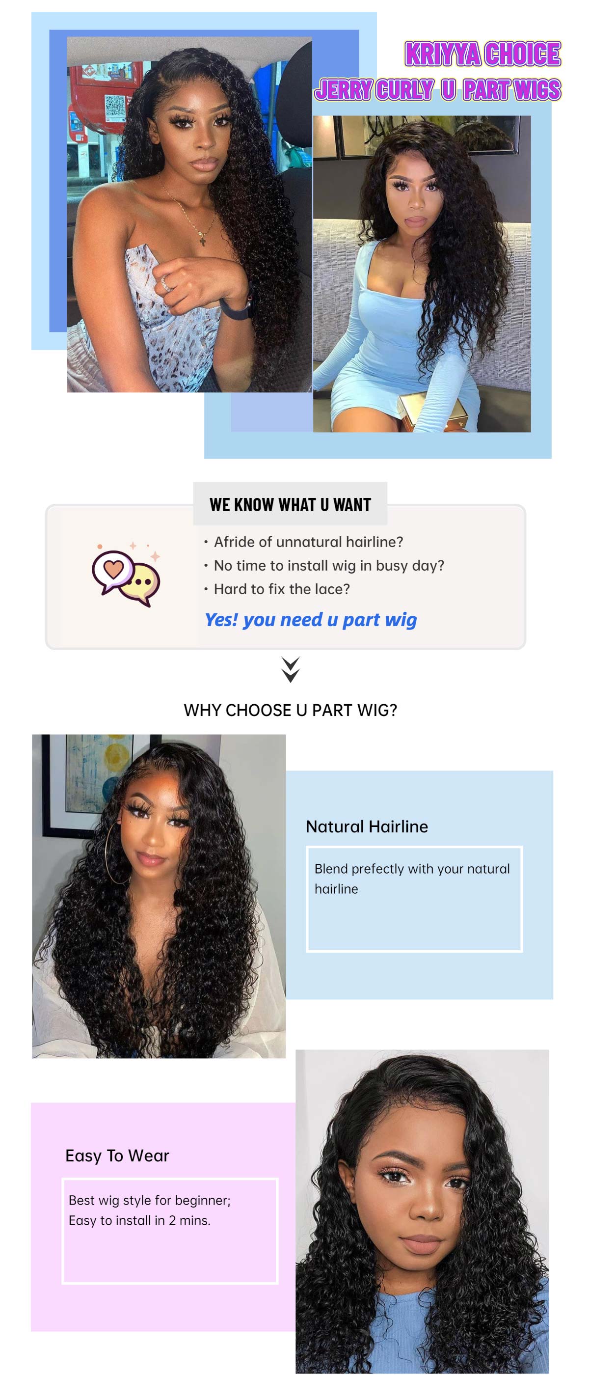 Kriyya Jerry Curly Right Part 1X3 Opening Size U Part Wig Capless Wig 150% Density