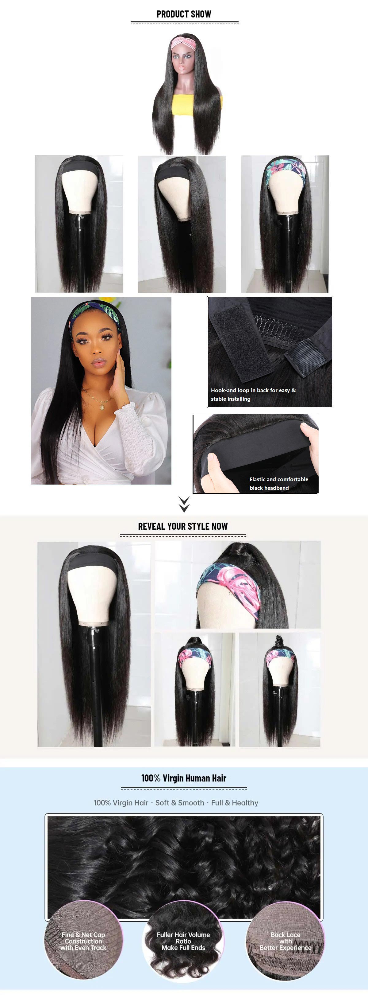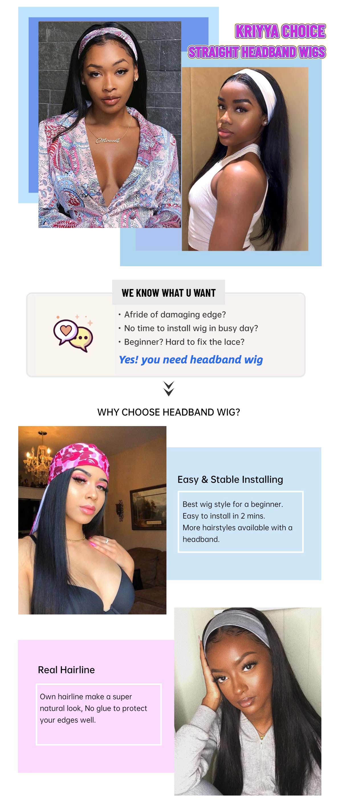 Kriyya Straight Headbands Wigs Glueless Human Hair Wigs with Headband Attached